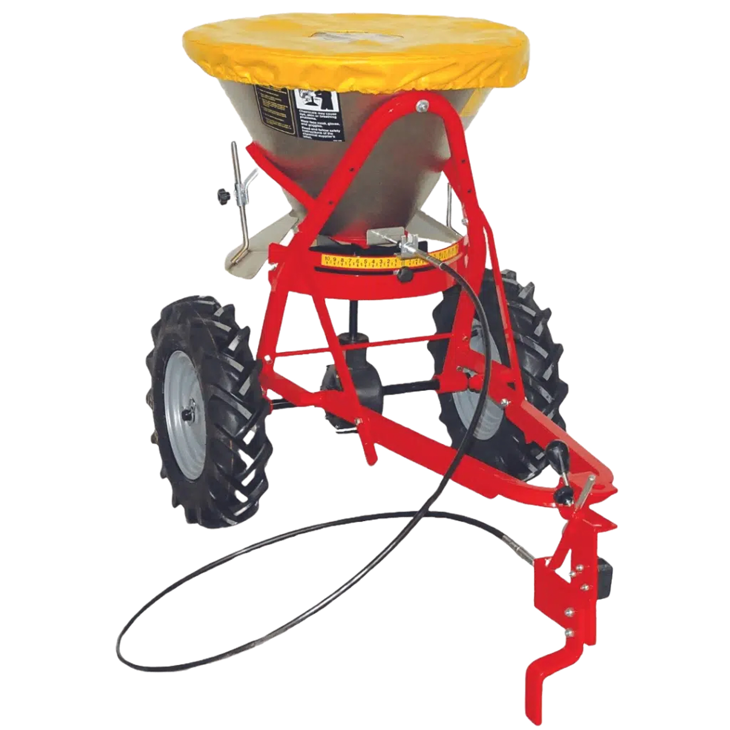 Kleiner, leichter Scheibenstreuer von 6 kg Leergewicht mit Abdeckplane.